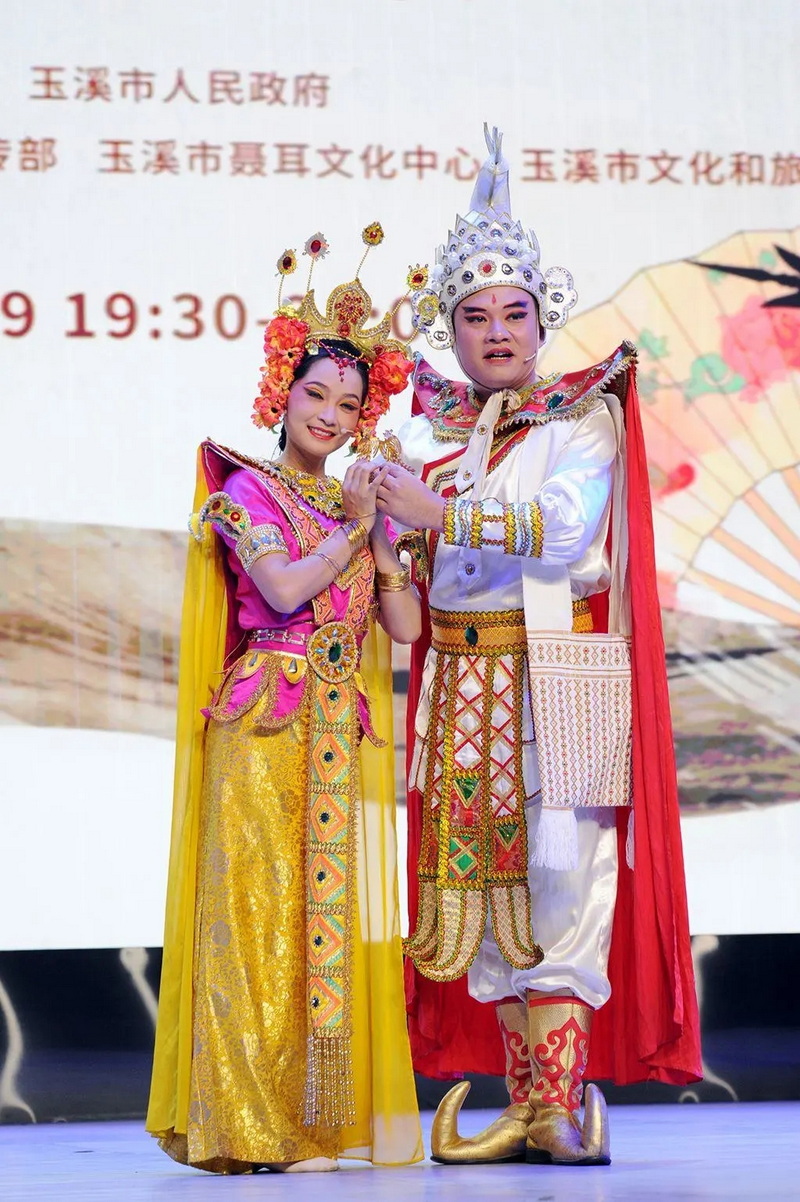 傣剧《海罕》是根据民间传说故事改编而成,主要讲述了景社国王子海罕英勇抵抗戈朗国的入侵,其未婚妻玉蚌誓死不从戈朗国王枫王,怀抱海罕头颅投江殉难,最后,景社国国师带兵愤讨敌寇,保卫了家乡。该剧民族特色浓郁,生动塑造了英勇果敢的海罕王子、矢志不渝誓死守护爱情的玉蚌公主等人物的动人形象,充分展现了傣族人民善良温和、不惧困难、顽强拼搏的民族性格。该剧1959年首演至今,曾多次荣获国家级、省级奖项,在德宏州及缅甸木姐、南坎掸族聚居村寨都有较大的影响,成为中缅跨境民族共同喜爱的戏剧精品。