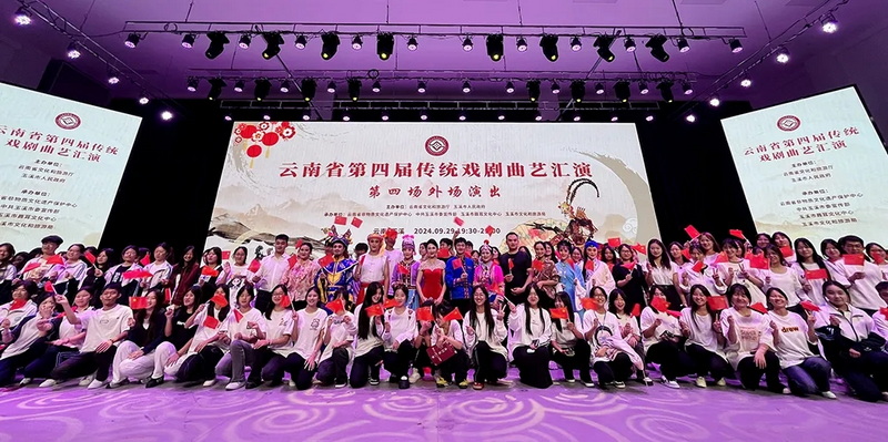 9月29日晚,云南省第四届传统戏剧曲艺汇演第四场外场演出走进玉溪技师学院。本场演出共有6个剧(节)目,分别是玉溪市代表队的滇剧《滑油山》,曲靖市代表队的花灯戏《磨坊产子》,德宏州代表队的傣剧《海罕》,楚雄州代表队的花灯戏《做媒》,文山州代表队的壮剧《换酒牛》,楚雄州代表队的彝剧《过桥》,既有云南的两大剧种滇剧和花灯戏,也有少数民族戏剧傣剧、壮剧、彝剧,演出现场掌声雷动,喝彩声不断。