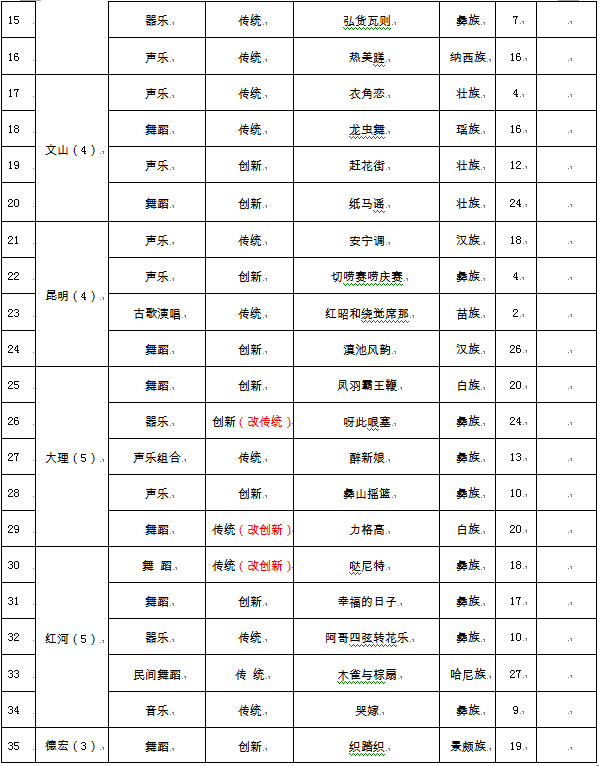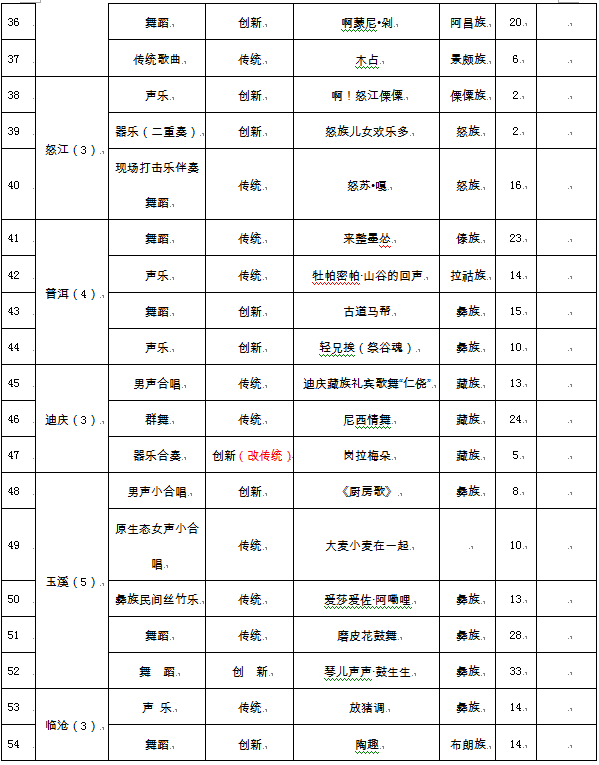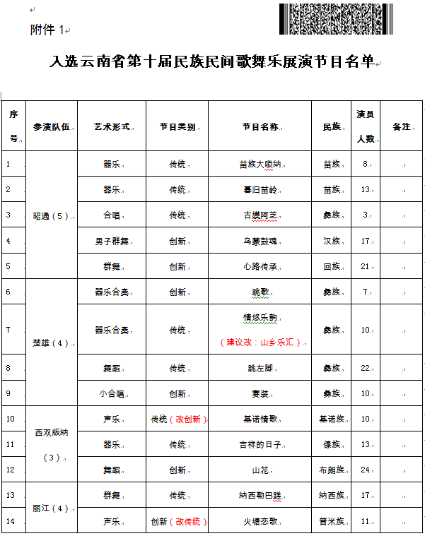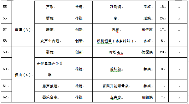 附件:1. 入选云南省第十届民族民间歌舞乐展演节目名单