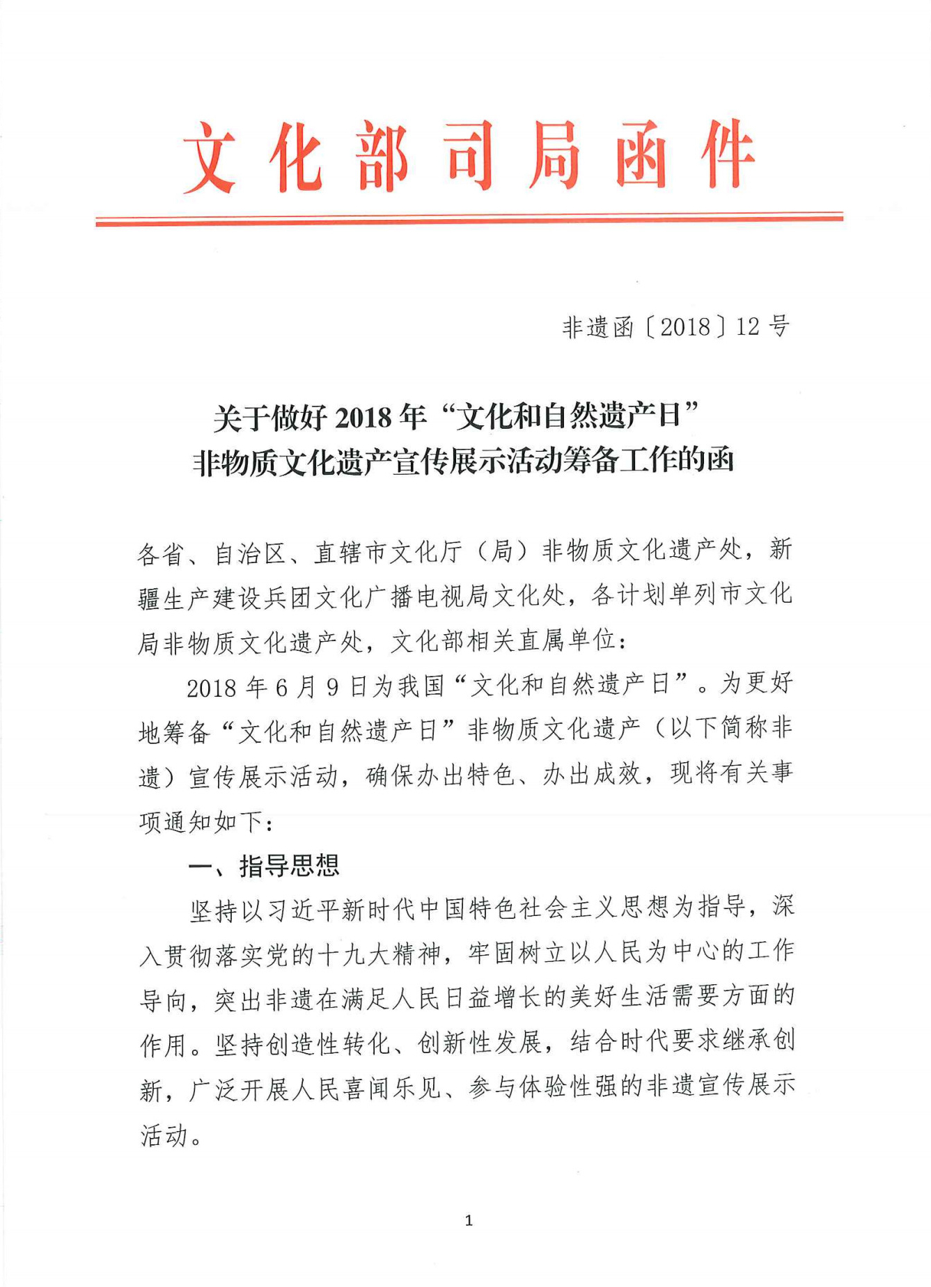 2018年6月9日为我国“文化和自然遗产日”。为筹备好“文化和自然遗产日”非物质文化遗产宣传展示活动,现将文化部非遗司《关于做好2018年“文化和自然遗产日”非物质文化遗产宣传展示活动筹备工作的函》(非遗函〔2018〕12号)转发给你们,请遵照执行。