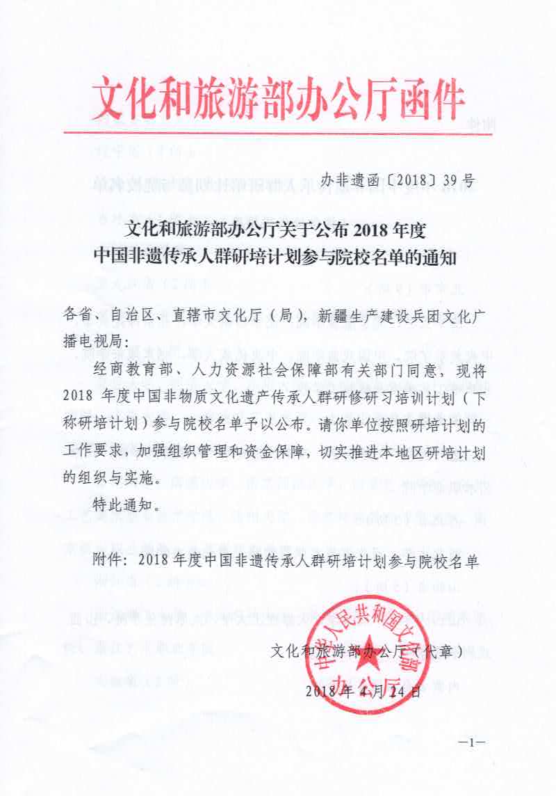 文化和旅游部办公厅关于印发2018年度研培计划参与院校名单的通知