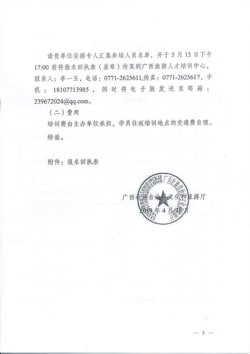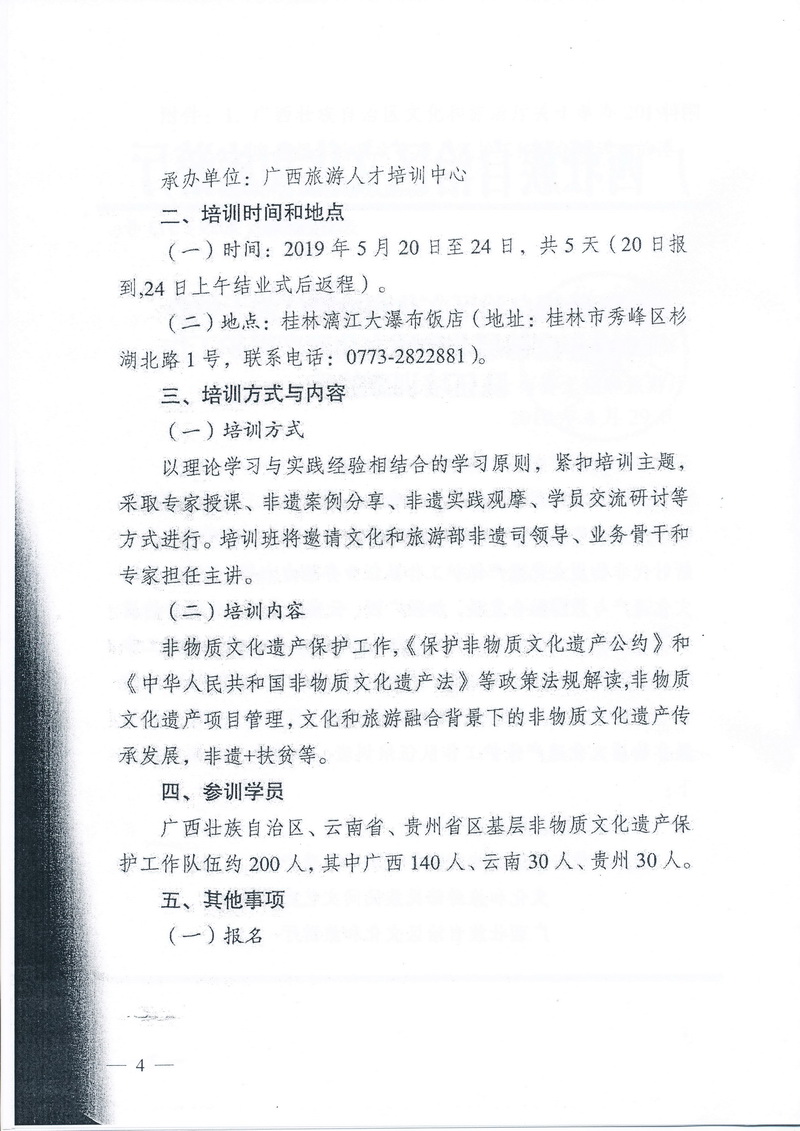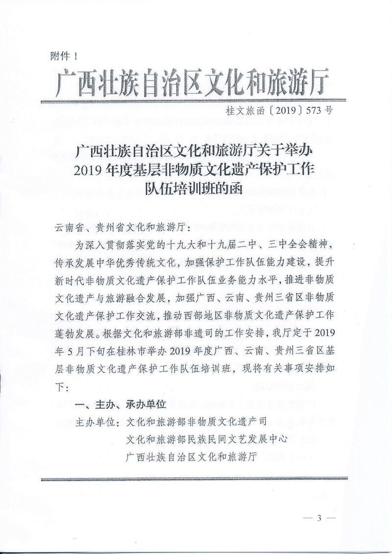 云南省文化和旅游厅关于派员参加2019年度基层非物质文化遗产保护工作队伍(广西)培训班的函