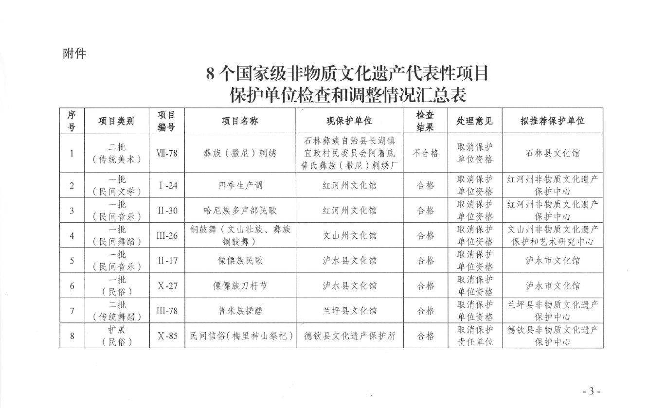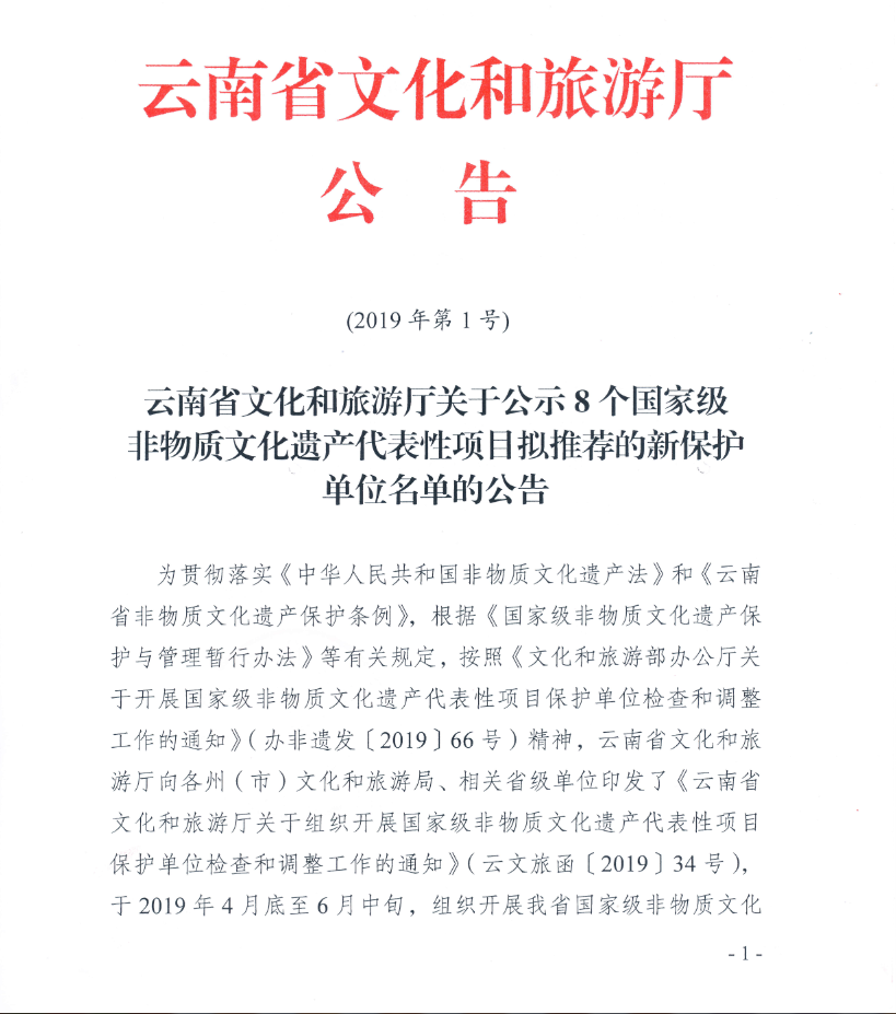 云南省文化和旅游厅关于公示8个国家级非物质文化遗产代表性项目拟推荐的新保护单位名单的公告