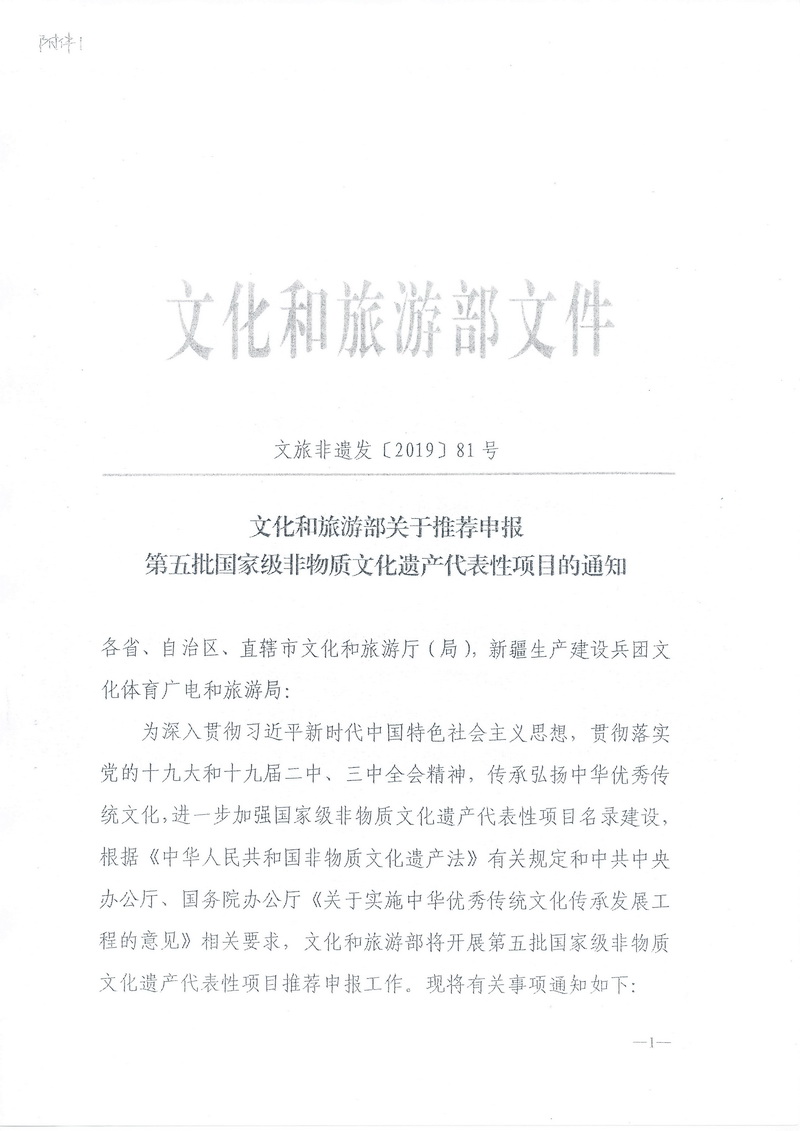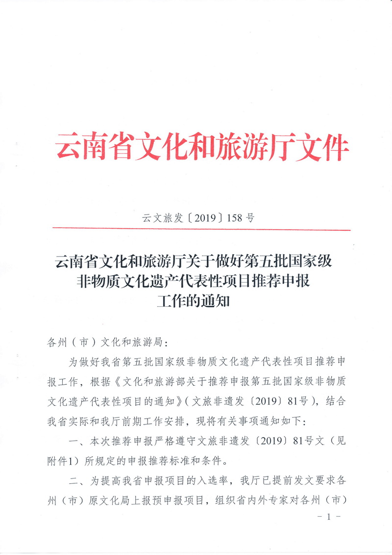 云南省文化和旅游厅关于做好第五批国家级非物质文化遗产代表性项目推荐申报工作的通知