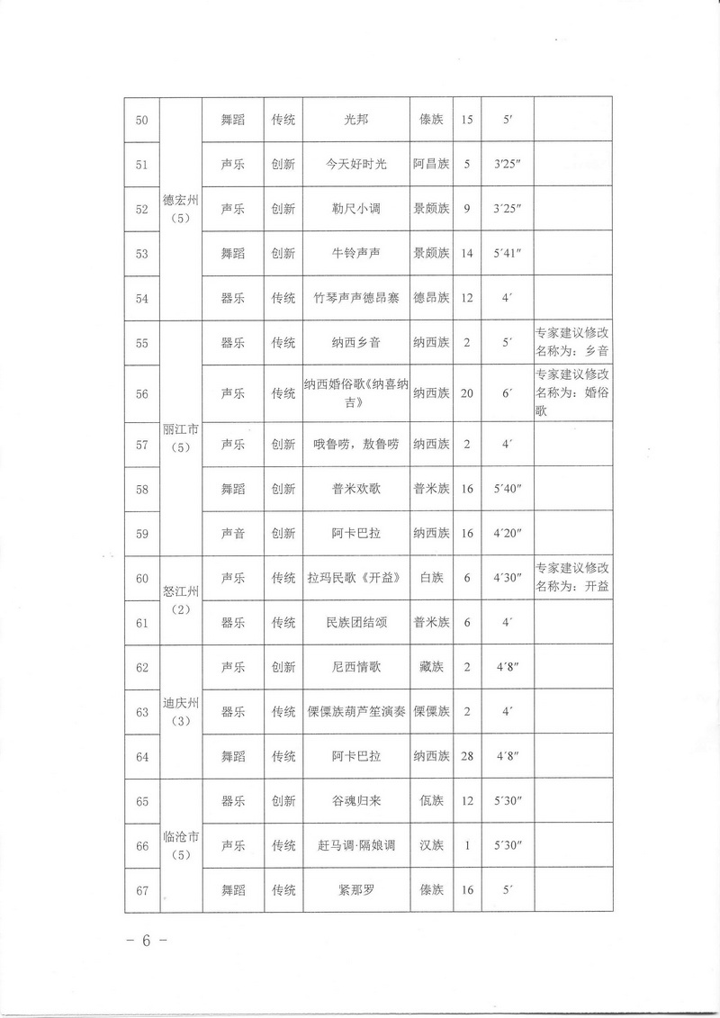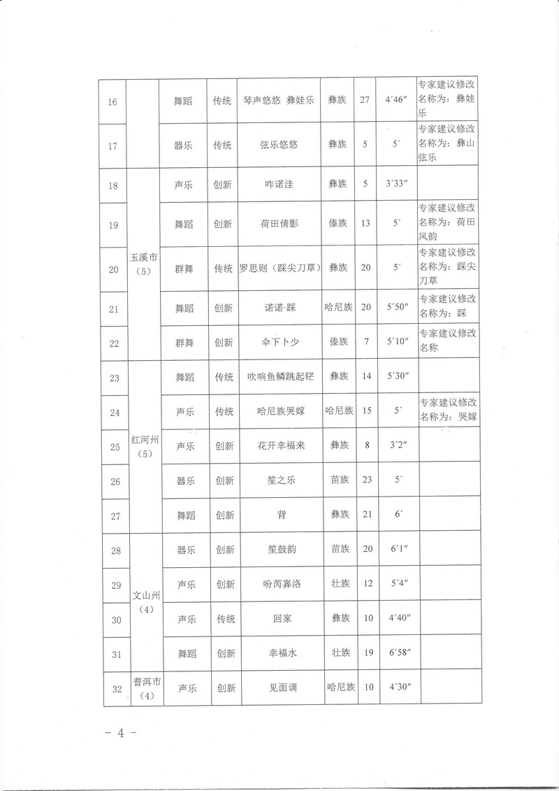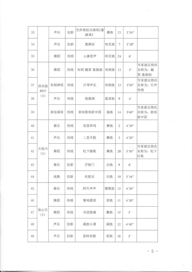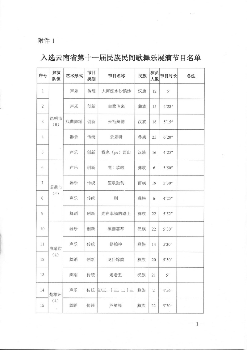 关于公布入选云南省第十一届民族民间歌舞乐展演节目名单的通知