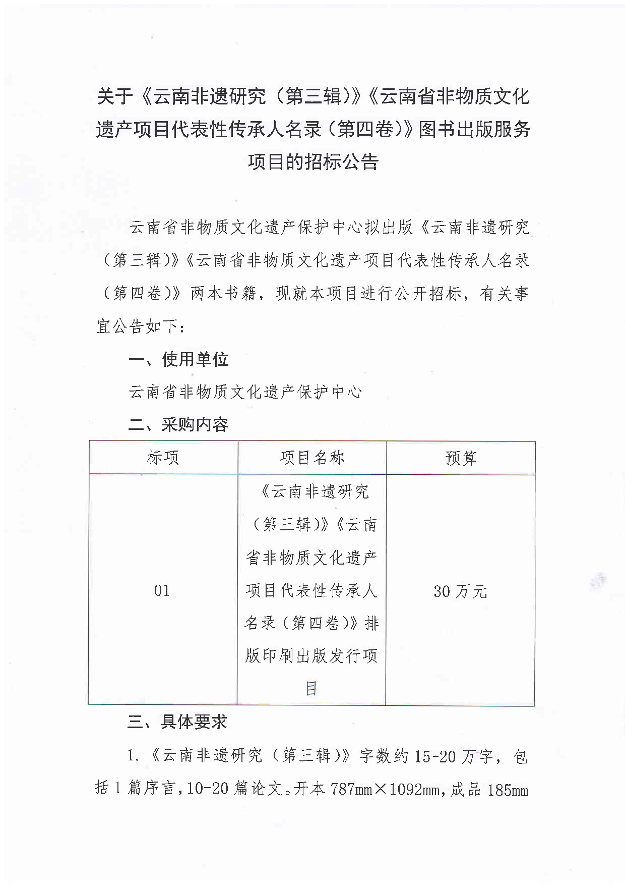 关于《云南非遗研究(第三辑)》《云南省非物质文化遗产项目代表性传承人名录(第四卷)》图书出版服务项目的招标公告