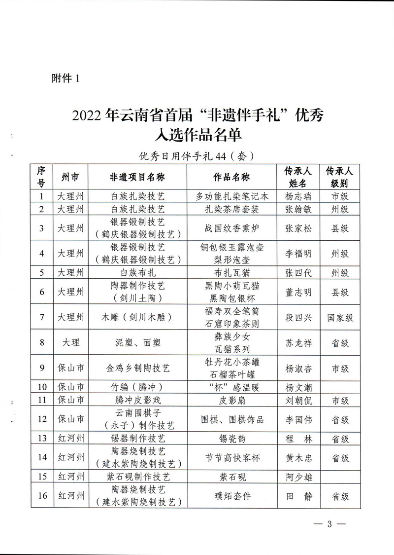 附件:1.2022年云南省首届“非遗伴手礼”评选优秀入选作品名单