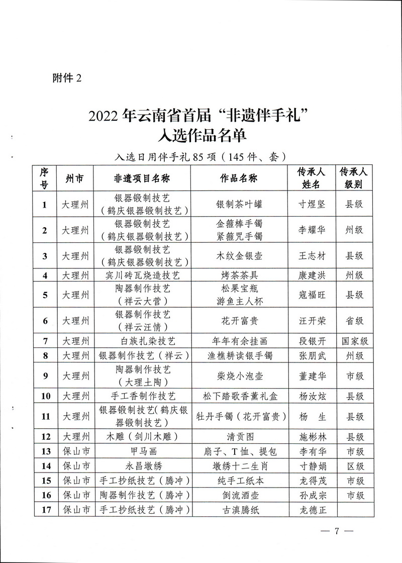 附件下载:关于公布2022年云南省首届“非遗伴手礼”评选入选作品名单的通知
