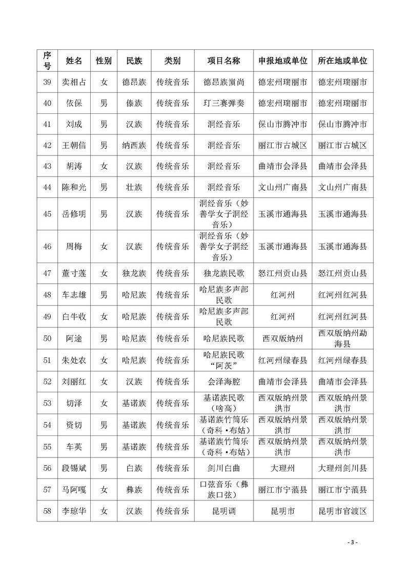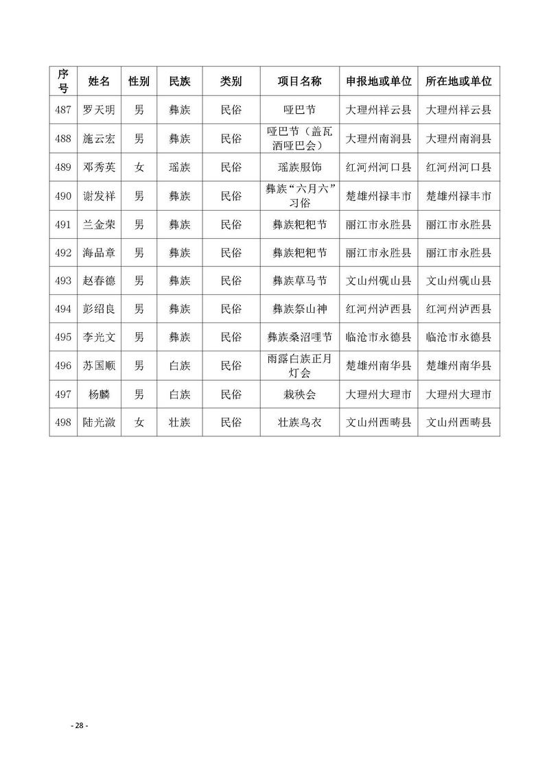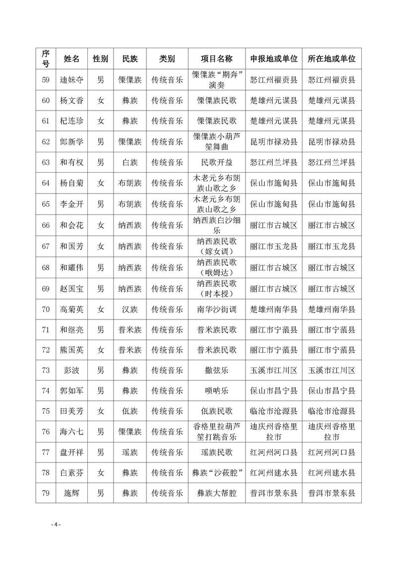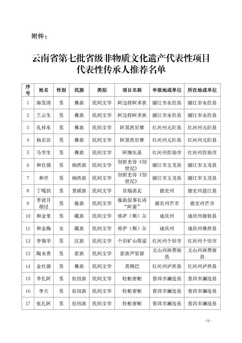 根据《云南省文化和旅游厅办公室关于开展第七批省级非物质文化遗产代表性传承人推荐申报工作的通知》(云文旅办发〔2023〕68号),经逐级推荐、材料审核、专家评审、评审委员会审议等程序,提出第七批省级非物质文化遗产代表性项目代表性传承人推荐名单498名,现予以公示。