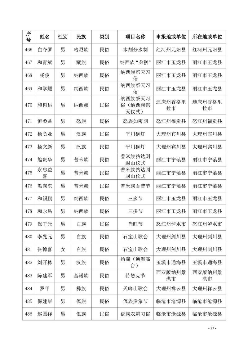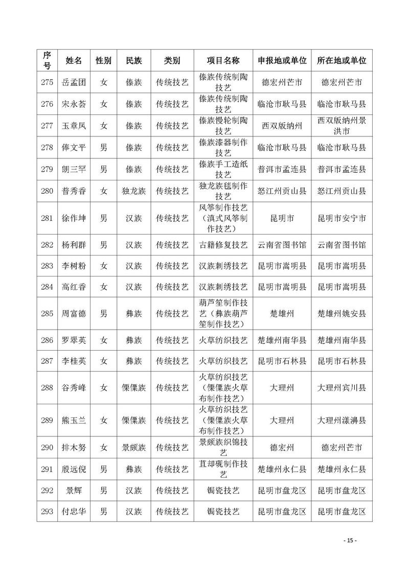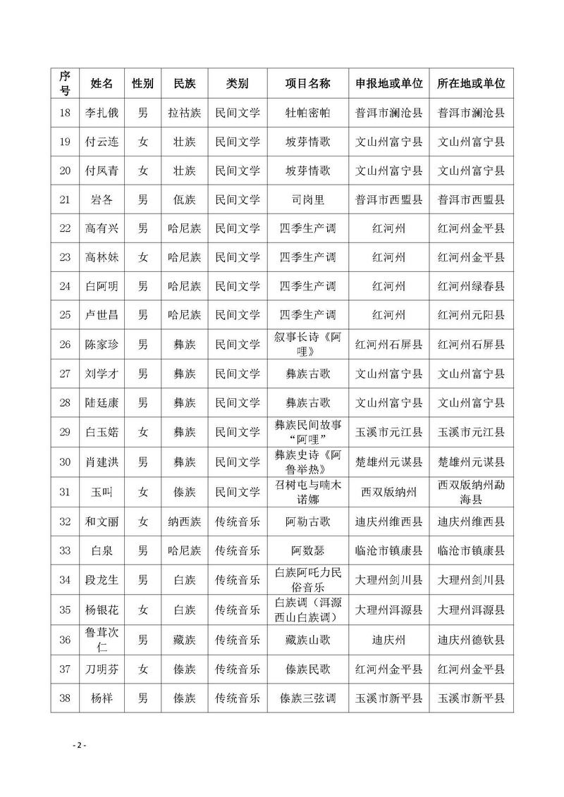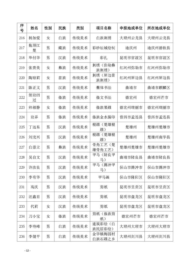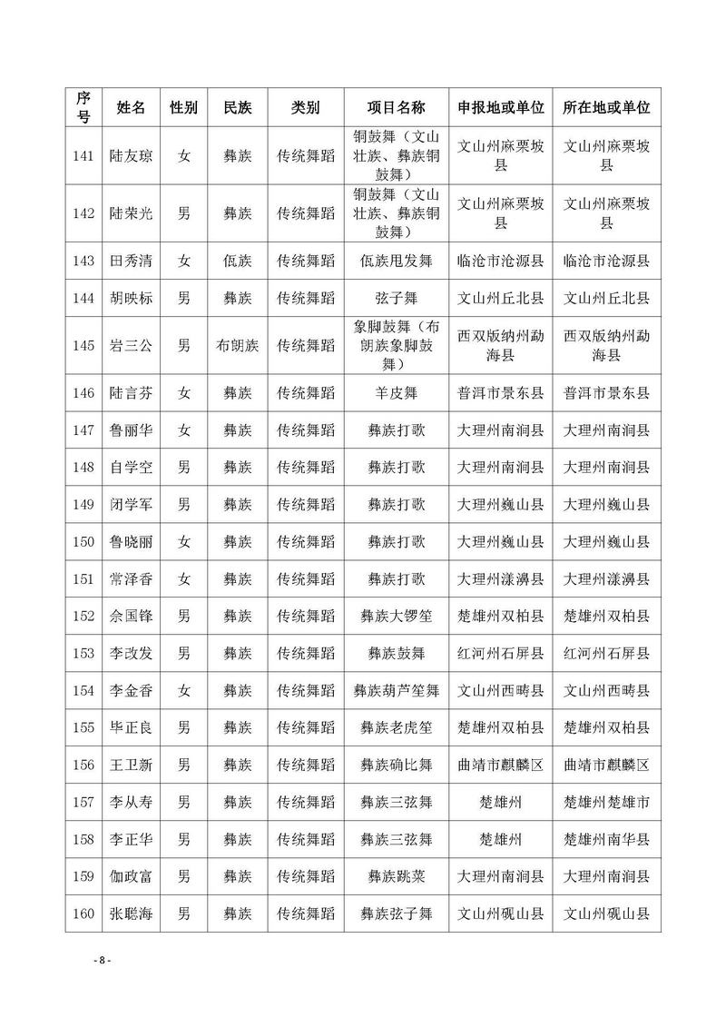 根据《云南省文化和旅游厅办公室关于开展第七批省级非物质文化遗产代表性传承人推荐申报工作的通知》(云文旅办发〔2023〕68号),经逐级推荐、材料审核、专家评审、评审委员会审议等程序,提出第七批省级非物质文化遗产代表性项目代表性传承人推荐名单498名,现予以公示。