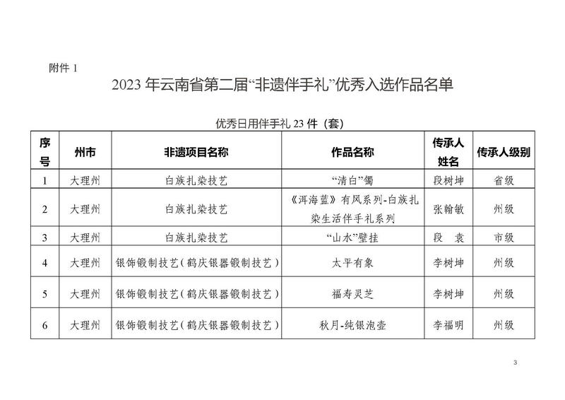 附件:1.2023年云南省第二届“非遗伴手礼”优秀入选作品名单