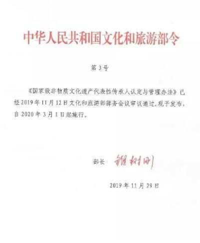国家级非物质文化遗产代表性传承人认定与管理办法