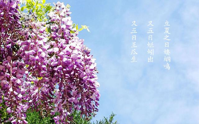 《月令七十二候集解》记载:“立夏,四月节。立字解见春。夏,假也。物至此时皆假大也。”《礼记•月令》解释立夏为:“蝼蝈鸣,蚯蚓出,王瓜生,苦菜秀。”这一时节,蛙类动物开始在田间塘畔鸣叫觅食,蚯蚓也爬出地面呼吸新鲜空气,乡间田埂的野菜日日攀长,逐渐成熟。立夏三候描述的正是孟夏之初的物候景象。
