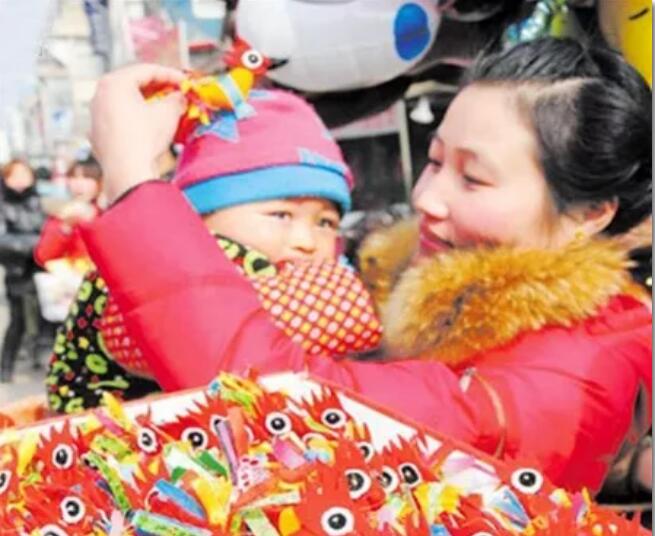 戴春鸡 戴春鸡是陕西铜川一带的古老风俗。每年立春日,母亲用布制作一个约3厘米长的公鸡,缝在小孩帽子的顶端,表示祝愿“春吉(鸡)”。