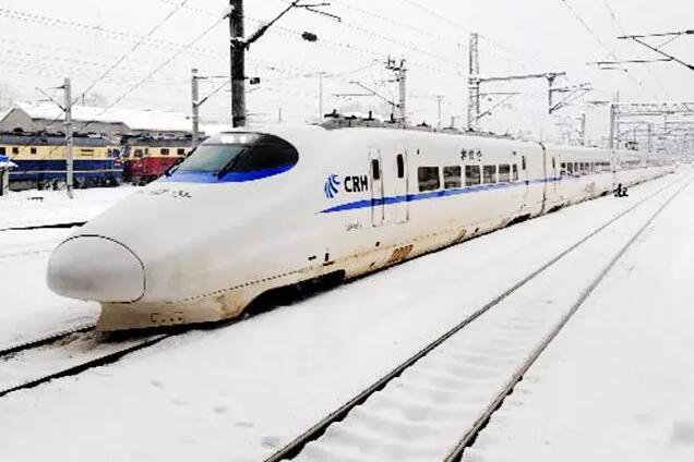雪中行驶的和谐号动车组列车(来源:网络)