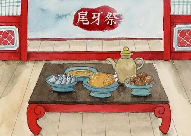 尾牙祭 尾牙源自于拜土地公做“牙”的习俗,在中国福建沿海、台湾等地仍保留着尾牙祭的传统。所谓农历二月二为“头牙”,以后每逢初二和十六都要做“牙”,到了农历十二月十六日正好是尾牙。尾牙与头牙一样,吃春饼(南方叫润饼),这一天生意人要设宴,白斩鸡为宴席上不可缺少的一道菜。据说鸡头朝谁,就表示老板明年要解雇谁。因此现在有些老板一般将鸡头朝向自己,以使员工们能放心地享用佳肴,回家后也能过个安稳年。