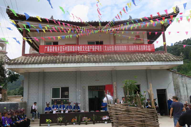 2016年7月12日,由州文化馆、广南县非遗中心联合到广南县者兔乡宜乐村壮族铜鼓舞传承地举行挂牌仪式。宜乐村共有壮族138户,人口674人,铜鼓舞队3支。跳铜鼓舞是宜乐村一直延续的民间传统习俗,每年大年初一,宜乐村必须举行跳铜鼓舞活动,村中男女老少着盛装相聚一起,和着铜鼓鼓点,跳起铜鼓舞,祈求来年风调雨顺、人畜安康。