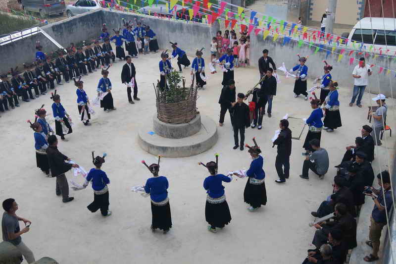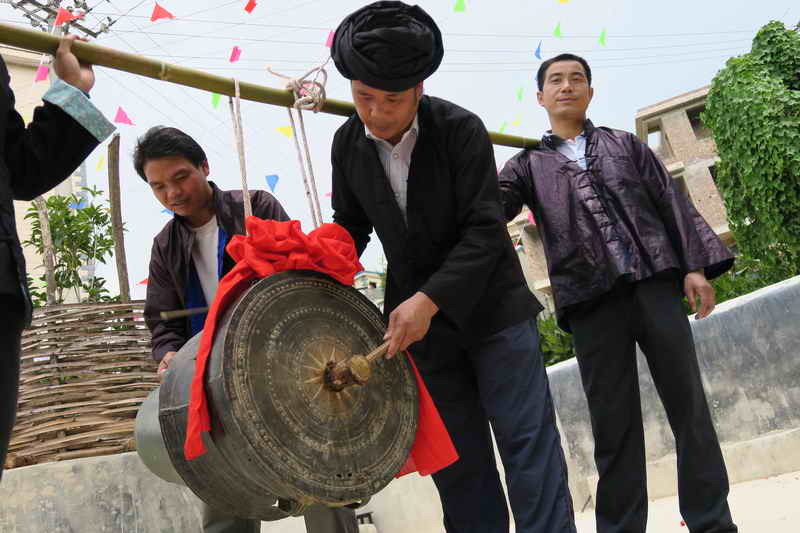 乡文化广播服务中心陆主任介绍,预先到村中安排挂牌仪式工作时,为增添活动气氛又考虑时间因素,建议在挂牌仪式上仅安排一支年轻铜鼓舞队进行表演,届时邀请来宾共同参与。此时,村民老人们发表意见了:“我们经历了各种变化动荡,跳了那么多年铜鼓舞,明天政府要来挂牌,一定要参加跳,我们是第一次见到,可能也是最后一次了。”淳朴的话语,却留给了我们许多思考。