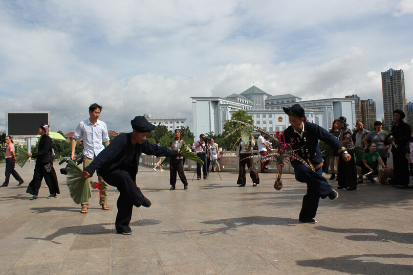 上午十时,非物质文化遗产展演活动在聂耳文化广场拉开序幕。国家级项目通海高台、关索戏、棕扇舞,省级项目磨皮花鼓舞、四腔、撒弦乐,市级项目剪纸等七个项目、一百余名传承人和民间艺人参加了演出。古朴的关索戏、棕扇舞、磨皮花鼓舞,奇异的高台,悠扬的彝族四腔、撒弦乐,美轮美奂的剪纸艺术,吸引数千群众驻足观看。