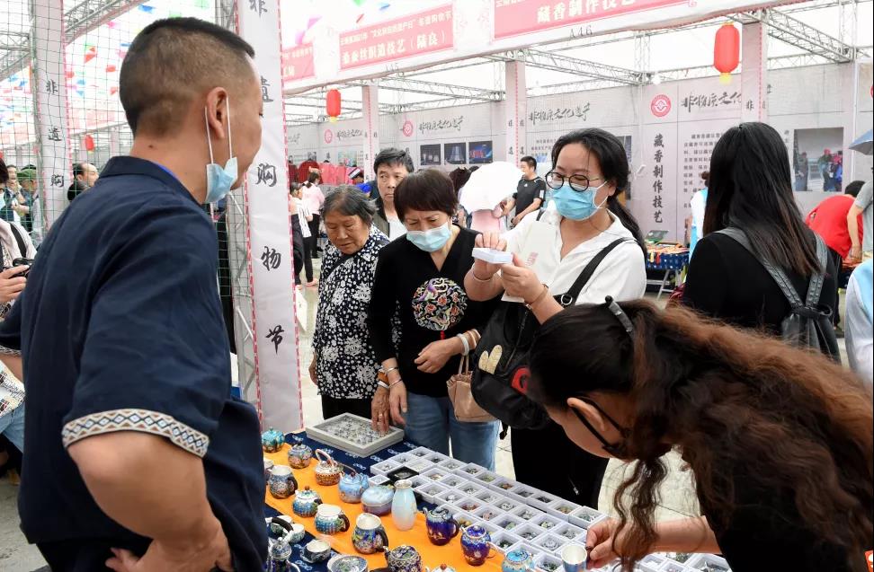 今年云南“文化和自然遗产日”宣传展示暨“七彩云南·非遗购物节”系列活动亮点纷呈,以“人民的非遗,人民共享”为主题,还组织开展了 “七彩云南·非遗购物节”线下线上展示展销、非遗现场体验,文物展示及鉴赏、“非遗”“文物文博”书画摄影优秀作品展、《中华人民共和国非物质文化遗产法》实施十周年知识竞赛及现场知识问答、非遗传统美食展、非遗进景区等系列活动。6月12日至14日,来自全省15个州(市)66项传统工艺类、传统美食类非遗项目产品在玉溪市红塔区聂耳文化广场进行展览展销,市民和旅行者积极参加非遗现场体验和购买非遗产品,文物鉴定专家在玉溪市聂耳纪念馆为国宝收藏爱好者免费鉴定收藏品。另外按照省文化和旅游厅党史学习教育工作的安排,为积极做好“我为群众办实事”“双报到双服务双报告”工作,切实推进乡村振兴,还特别邀请了怒江州福贡、泸水、贡山三个非遗扶贫就业工坊参加本次活动,其非遗产品受到市民和旅行者的喜爱。2021年5月下旬至6月中旬,全省部分非遗展商还与电商平台合作,采取举办非遗产品销售日、直播销售等方式,开展网络销售活动,通过线上“非遗购物节”,满足人民群众热爱传统文化、喜爱非遗产品的需求,推动非遗更好融入现代生活。