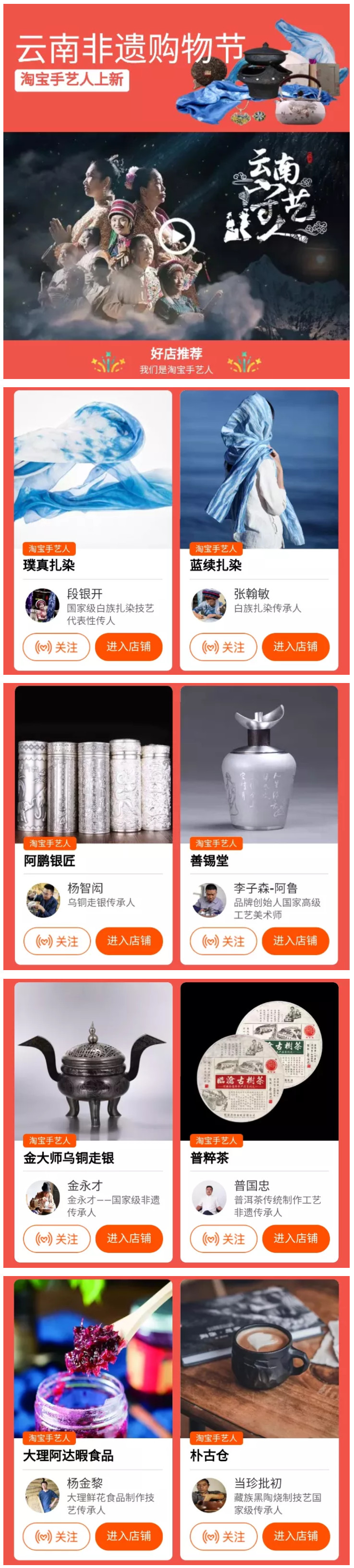6月6日-19日期间打开手机淘宝搜索“云南非遗购物节”即可入场选购非遗产品