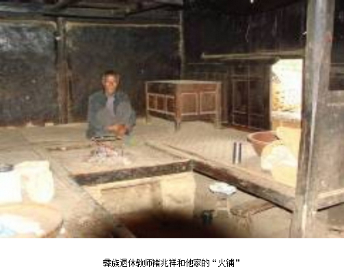 7.火铺,又叫火塘通铺,是巍山高寒偏远山区马鞍山乡彝族群众抵御冬春酷寒而顺室内三方墙壁装置供全家人暖眠的“凹”字形榫卯木架台式木板大连床——“凹”形三方呈等高水平床面,上铺篾席、毡垫;缺口处略低于床面10厘米上下,是泥质方台火塘位置,置三脚架,烧起火来整屋暖和;一侧有出烟孔和气窗,确保人员气畅平安;进门处有宽敞走廊,设祖先供祭龛位和放置日常生活器具台架等。此火铺构型和全家睡大铺方式是当地彝族祖先为维系生命延续发明的一项重要科技设作,业已形成流传千百载的同生活、衣食、亲情观念、伦理道德、信仰风俗、口传文学、打歌、山歌、乐器、民间美术、手工技艺以及民间文化艺术、村史、家史传承等相关的“火铺文化”传统。该乡省级民族传统文化保护区青云大村民居普遍有此设施。彝族退休教师褚兆祥十分熟悉火铺知识技艺,盖了新房依然保存着百年老屋的火铺原貌,说要用老屋宣传符合客观实际的合理生态科技文化知识传统,让其起“活态博物馆”的作用。乡亲说起他热爱、保护、宣传乡土珍贵文化传统的精神都表示称赞。