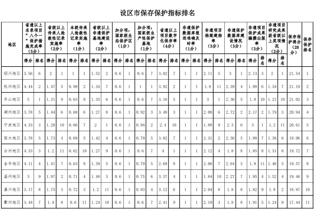 (三)以名录体系、保存保护、传承传播、事业保障、队伍建设、工作创新等6个方面,客观评价全省非遗保护重点工作。评价体系反映了各地区在项目名录、传承人、保护资金、工作人员等基础工作方面的情况,还设置工作创新案例指标,通过专家打分机制,鼓励、推动全省非遗保护工作方式方法创新。