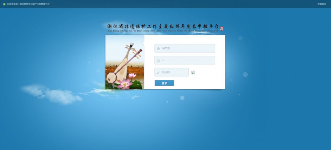 图7 浙江省非遗保护工作主要数据年报表申报平台登录界面
