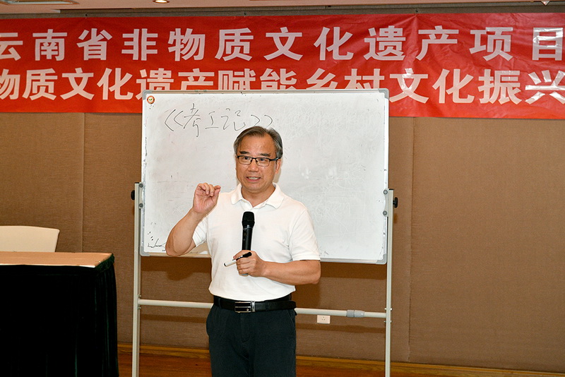 云南省文化和旅游厅二级巡视员张碧伟出席开班仪式,讲话要求广大传承人学以致用,将新的理论应用于实践,实现创新和发展;云南省文化和旅游厅非遗处一级调研员念华昆讲授《忠诚使命,履行职责,做好非遗传承保护工作》专题党课。培训讲求实效,培训班分理论授课和现场教学为两个部分。在理论授课中,培训班邀请了众多专家学者进行授课。