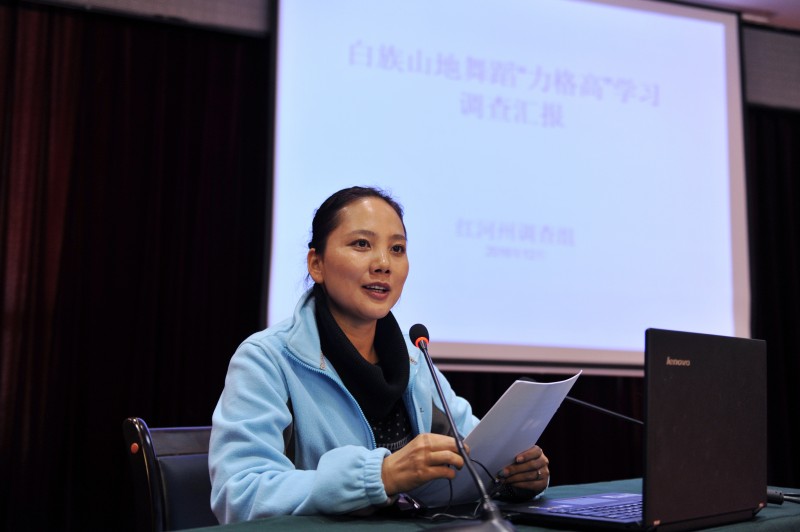 授课结束后,各州市调查组认真地查找文献资料,制作调查提纲。为了更科学、准确、全面地记录力格高的动作套路,学员们还向传承人和当地文化站工作人员学跳力格高,通过亲身体验,品味力格高的动作韵律和风格特征。随后,调查组先后深入宝丰乡、关坪乡,对力格高项目分布地的环境、舞蹈动作套路、传承人基本情况,以及非遗进校园、力格高舞台表演等项目传承现状进行调查和资料采集。调查期间,一位年近80的老奶奶主动走到摄像机前跳起了力格高,古朴大方的舞蹈动作让学员赞叹不已,更为宝丰白族群众对本民族文化的热爱和自豪倍感钦佩。