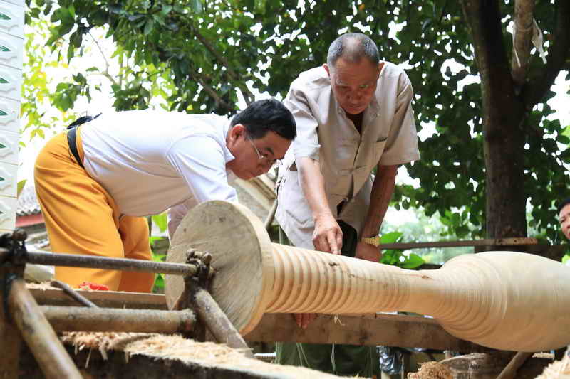 临沧组现场采录象脚鼓制作工艺流程