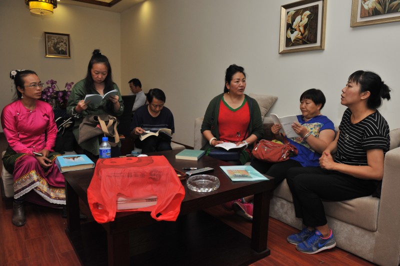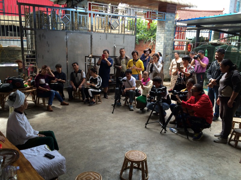 普洱组学员中经验充足的“老人”挺多,“新手”也不少。在培训中,他们教学相长,相互配合,认真完成任务,从不推脱抱怨。胡斌洁老师除了担任摄影的任务,还负责普洱组日志的收发。由于每一位学员所承担的任务各不相同,每天日志的写作和提交时间也前后不一。不论日志交得多晚,一旦收到,胡斌洁老师立马在第一时间内迅速提交给指导老师;如果有人忙得忘记了,她也会贴心地提醒大家。此外,她还对每一篇日志的文件名称都按照姓名和日期进行了备注,这为后期整理提供了极大的便利。担任摄像的苏云老师经验老道,不放过任何一个可以入镜的细节,在扛着摄像机和脚架的同时还用脚步丈量与拍摄相关的每一个角落。与此同时,他还对其他学员的请教悉心传授、毫不藏私,孟连的王建等几名学员都心悦诚服地喊着要直接“拜师”……负责摄影的江城县文化馆的李骏老师不仅按照提纲要求进行拍摄,还把调查中收集到的图书、画册进行了认真、全面的翻拍与整理。与此同时,他用镜头记录下了大量同组学员们的工作瞬间,上传到微信群里,让项目组全体学员都可以分享他们的收获和进度。这样的事例不胜枚举。