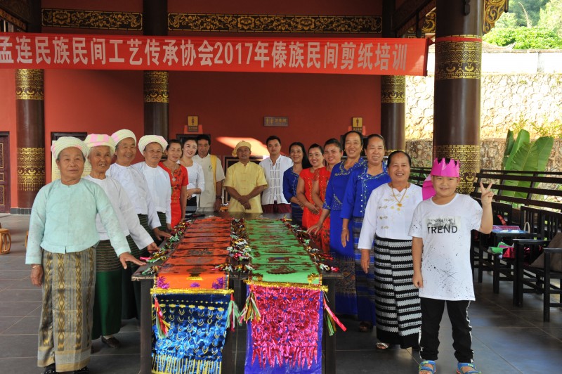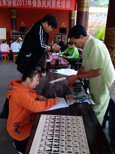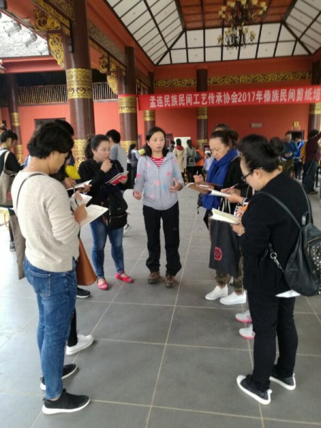 2017年云南省非遗业务骨干田野调查培训班第二期《傣族剪纸》项目组由省非遗中心肖依群副主任为组长,指导专家为熊丽芬老师,成员包括省中心赵桃、字磊、吴昭红、高焰,学员37名,分别来自普洱市(14人)、迪庆州(5人)、孟连县(18人)。