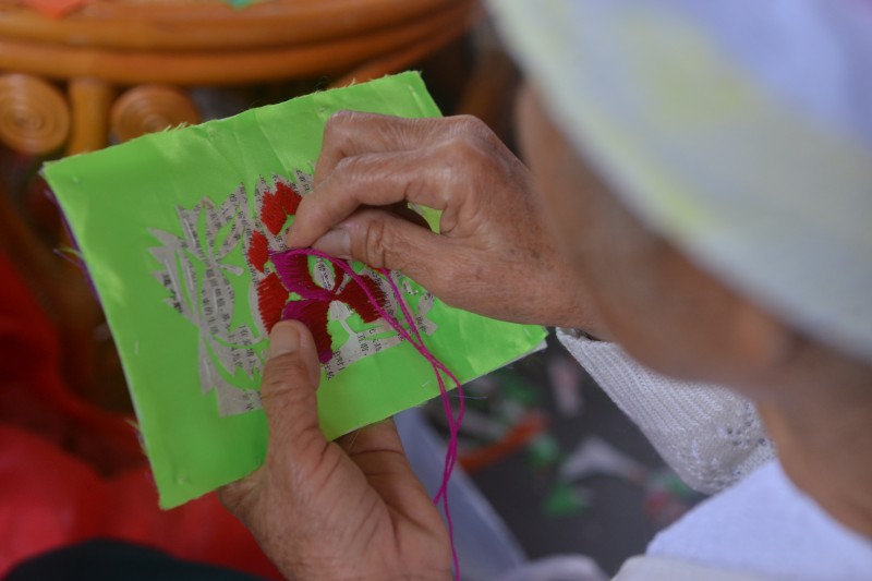 同时,阿新老师还主动对孟连组的学员们倾囊相授:她把自己的工作经验细细地传授给孟连学员,并且毫不藏私地把有关资料共享给他们。她甚至专门自费去打印了自己的《藏族剪纸》的论文和有关调查材料交给孟连的学员们……耐心、细致、温柔体贴的阿新老师被项目组所有人亲热地称呼为“新姐”。