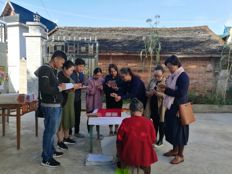 迪庆组的老师们分工明确、高度配合,每个人在这个小团队中都是不可或缺的一员,都为培训任务的达成付出了汗水和努力。他们说的不多,但做得很多。他们用极短的时间克服了由于民族文化差异而引起的“水土不服”,决心做出一份完整的《傣族剪纸》(孟连)代表性传承人申报材料,既是锻炼队伍,也是对孟连县非遗保护工作的支持。为了这个目标,他们一次次重返调查点进行深度采集,力求呈现最完整的传承人全貌;一次次根据不断充实的素材修改和完善调查报告与解说词,九易其稿……在迪庆组老师们的身上,我们看到了战斗在非遗保护工作第一线的基层同志们的默默耕耘与付出,看到了团队合作在非遗保护工作中起到的效率和作用。