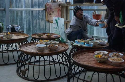 迎面走来一位老奶奶,面部刻着粗浅不一的皱纹,耳垂上大概3厘米的耳洞让耳朵看起来像是被太阳晒蔫了的花。“今天上新房,好看吧。”听得出来是一位汉语不错的老奶奶,原来她就是这间房子的主人。据村里人说,老奶奶是一位孤寡老人。在这大喜的日子里,前来帮忙的村民都各自忙碌着。看着村民们在老奶奶家穿梭的身影,可以感受到萦绕在村子里的那份和睦,没有人会因为她是一位独居的孤寡老人而有多余的看法。