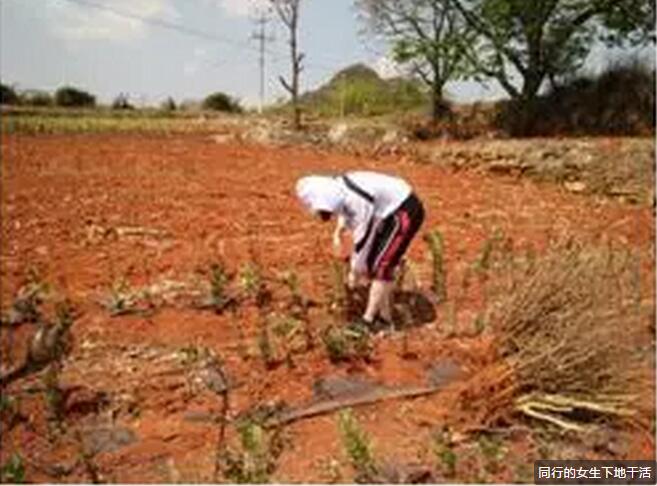 同行的女生下地干活