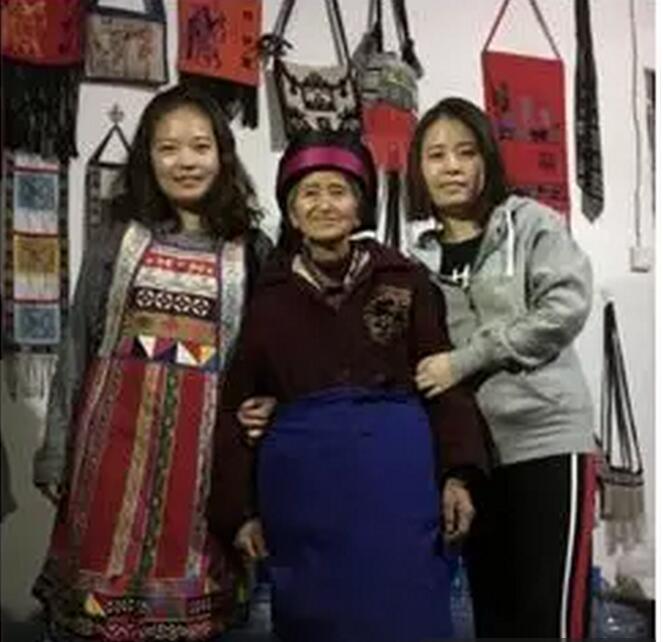 我们在大糯黑村的田野生活中一共遇见两位彝绣老艺人,其中有一位还是撒尼刺绣县级非物质文化遗产代表性传承人曾凤芝老人,老人如今已经70多岁了但身体还硬朗,平时还能做一些手工织物。她很平易近人,所有的刺绣成品都拿来给我们拍照试穿,有几件还是从老一辈就一直流传至今的,十分宝贵。