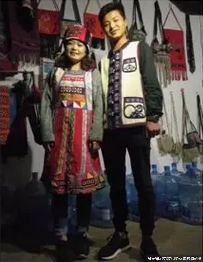 身穿撒尼男装和少女装的调研者