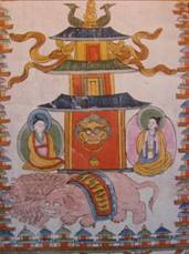 ⑵藏传佛教——丽江福国寺五凤楼明代壁画、玉峰寺正殿和十里香院(僧房)清代壁画;香格里拉中心镇公堂、德钦东竹林寺、维西康普寿国寺、德钦奔子栏镇三处经堂(娘轰曲登、曲登拥曲登、习木贡洞可经堂)清代壁画。