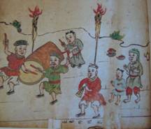 彝族毕摩经书绘画火把节祭山歌舞图(清)
