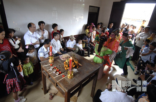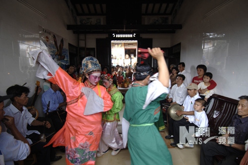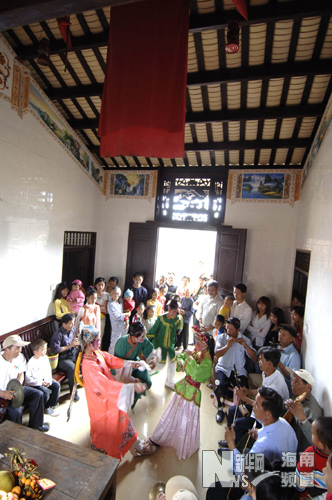 演员在海南省文昌市大勇村表演盅盘舞